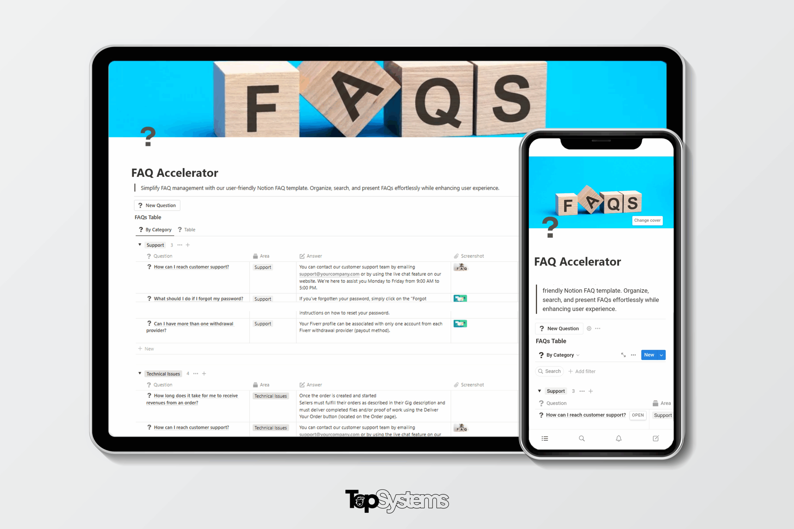 We know that your success hinges on efficient customer support and user satisfaction. That’s why the Notion FAQ Accelerator exists – to make your life easier, your goals achievable, and your customers happier. We understand your desires for simplicity and effectiveness. Let us be your partner in success, providing the tools you need to excel.