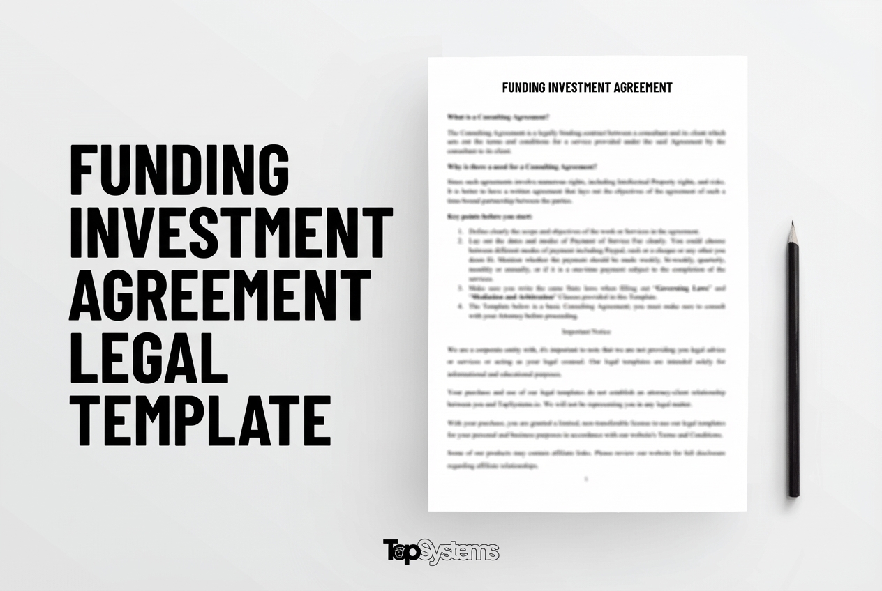 This professional Funding Investment Agreement template provides a comprehensive legal framework for Funding Investment arrangements. Designed for businesses and individuals, this template ensures compliance with applicable laws while protecting your interests.