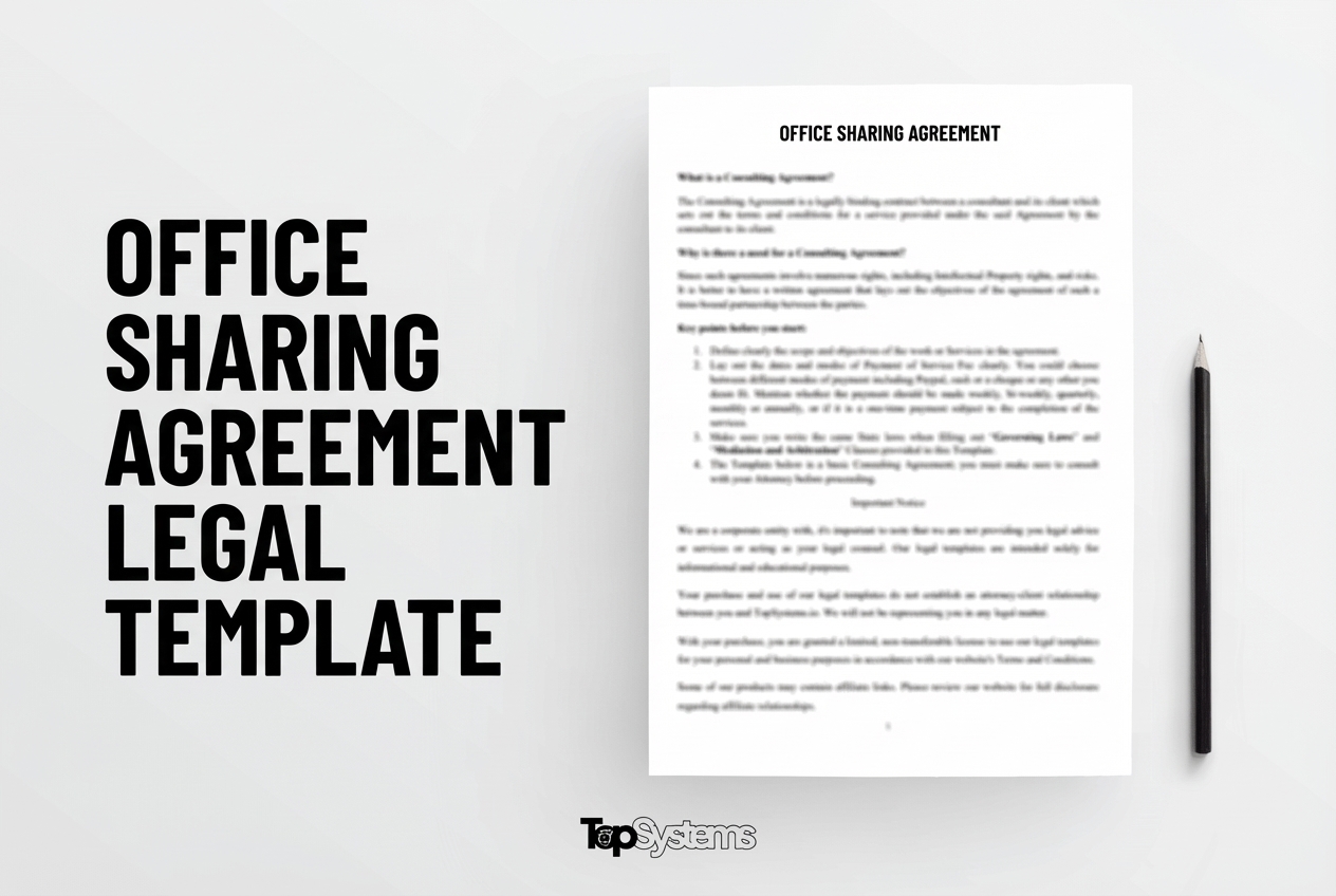 This professional Office Sharing Agreement template provides a comprehensive legal framework for Office Sharing arrangements. Designed for businesses and individuals, this template ensures compliance with applicable laws while protecting your interests.