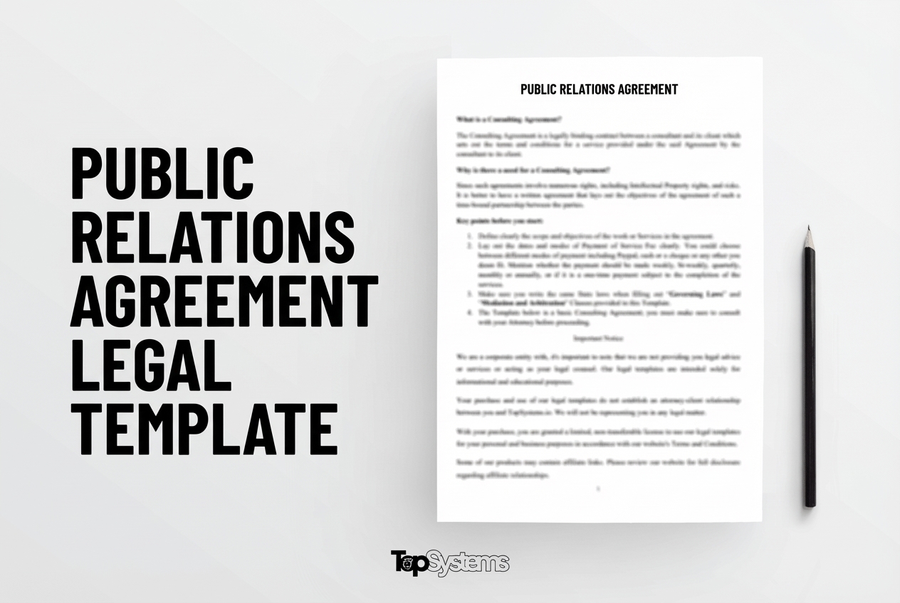 This professional Public Relations Agreement template provides a comprehensive legal framework for Public Relations arrangements. Designed for businesses and individuals, this template ensures compliance with applicable laws while protecting your interests.