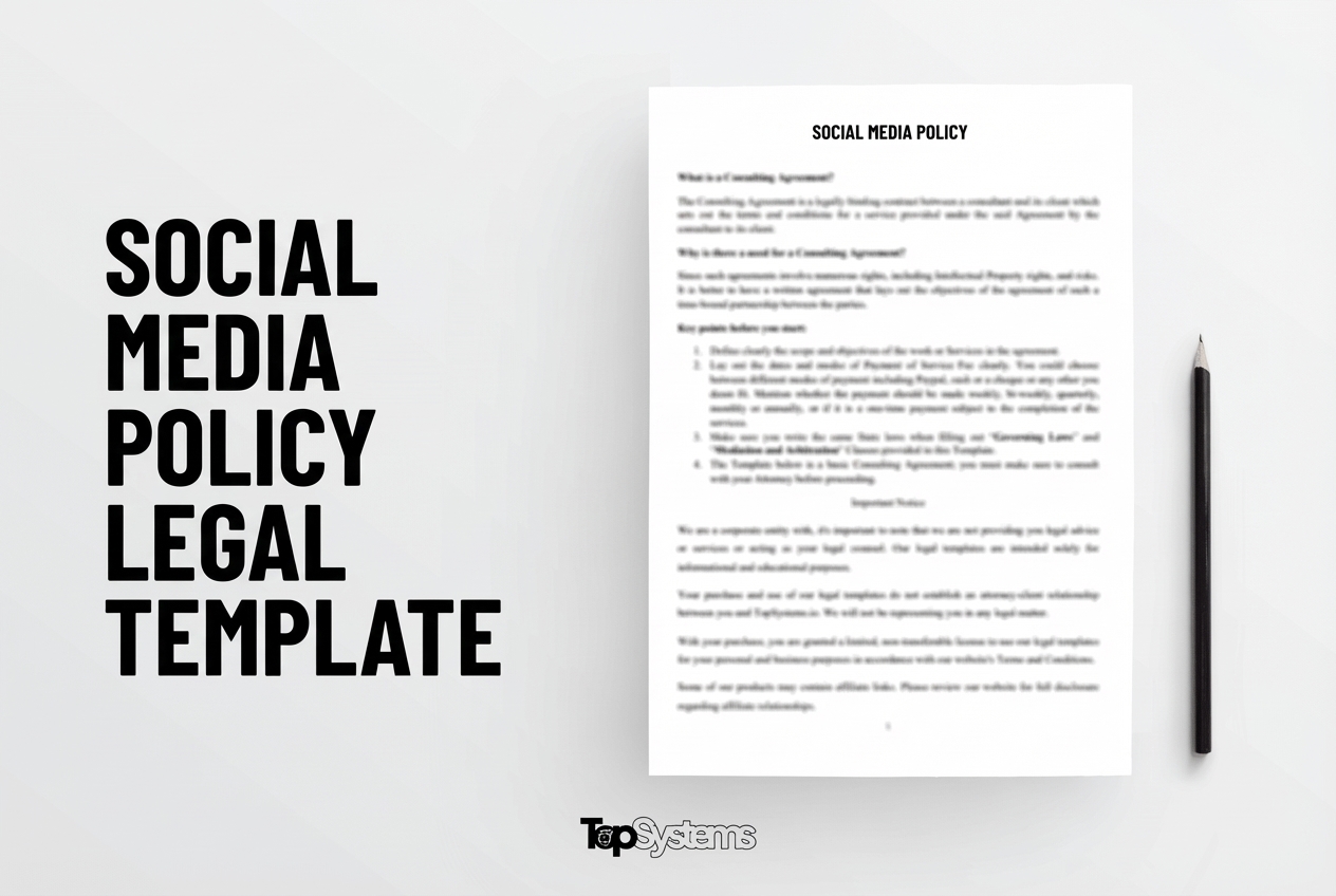 This professional Social Media Policy template provides a comprehensive legal framework for Social Media arrangements. Designed for businesses and individuals, this template ensures compliance with applicable laws while protecting your interests.