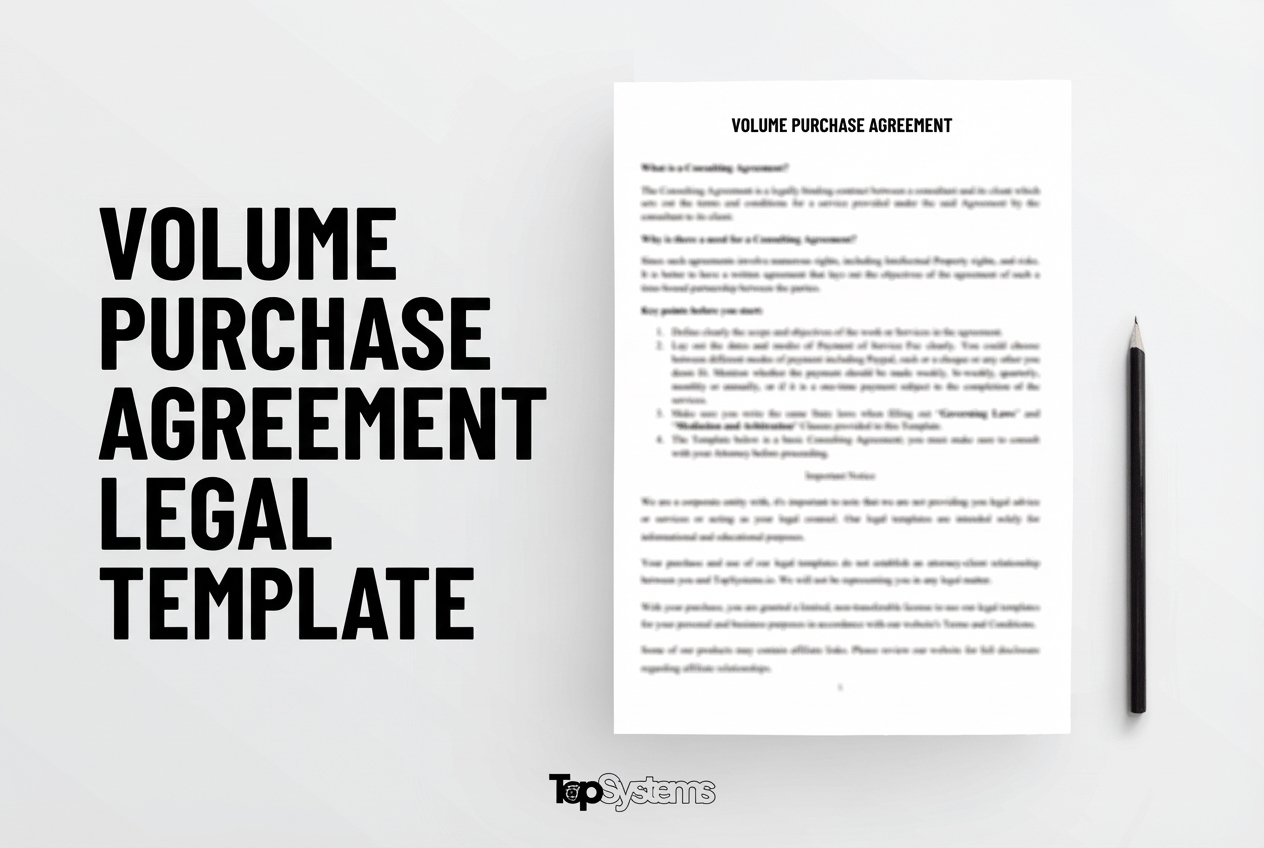 This professional Volume Purchase Agreement template provides a comprehensive legal framework for Volume Purchase arrangements. Designed for businesses and individuals, this template ensures compliance with applicable laws while protecting your interests.